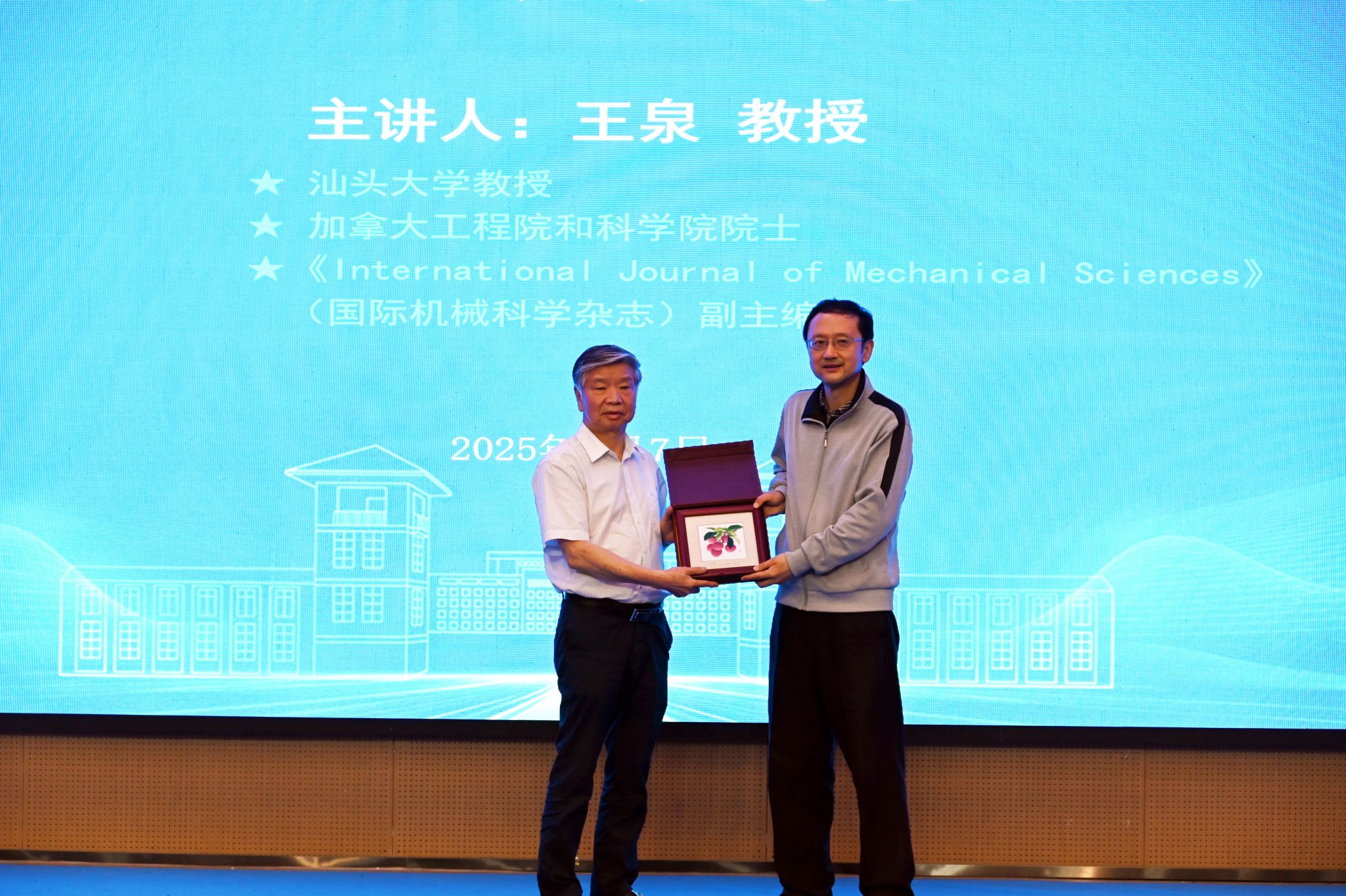 讲座尾声,李建超书记代表学校向王泉院士赠送纪念品—广绣《荔枝》。张明远教授在总结时说,听了王泉院士所讲的理念,自己也感同身受。王院士以科学史发展的案例,揭示了在科学发展进程中,充满了科学家自身思考与探索的快乐,而这种快乐正是“为何学习”的心灵动力。他引述了柏拉图、亚里士多德、孔子关于学习与思考是最大快乐的论断,希望同学们去切身体会学习之乐。