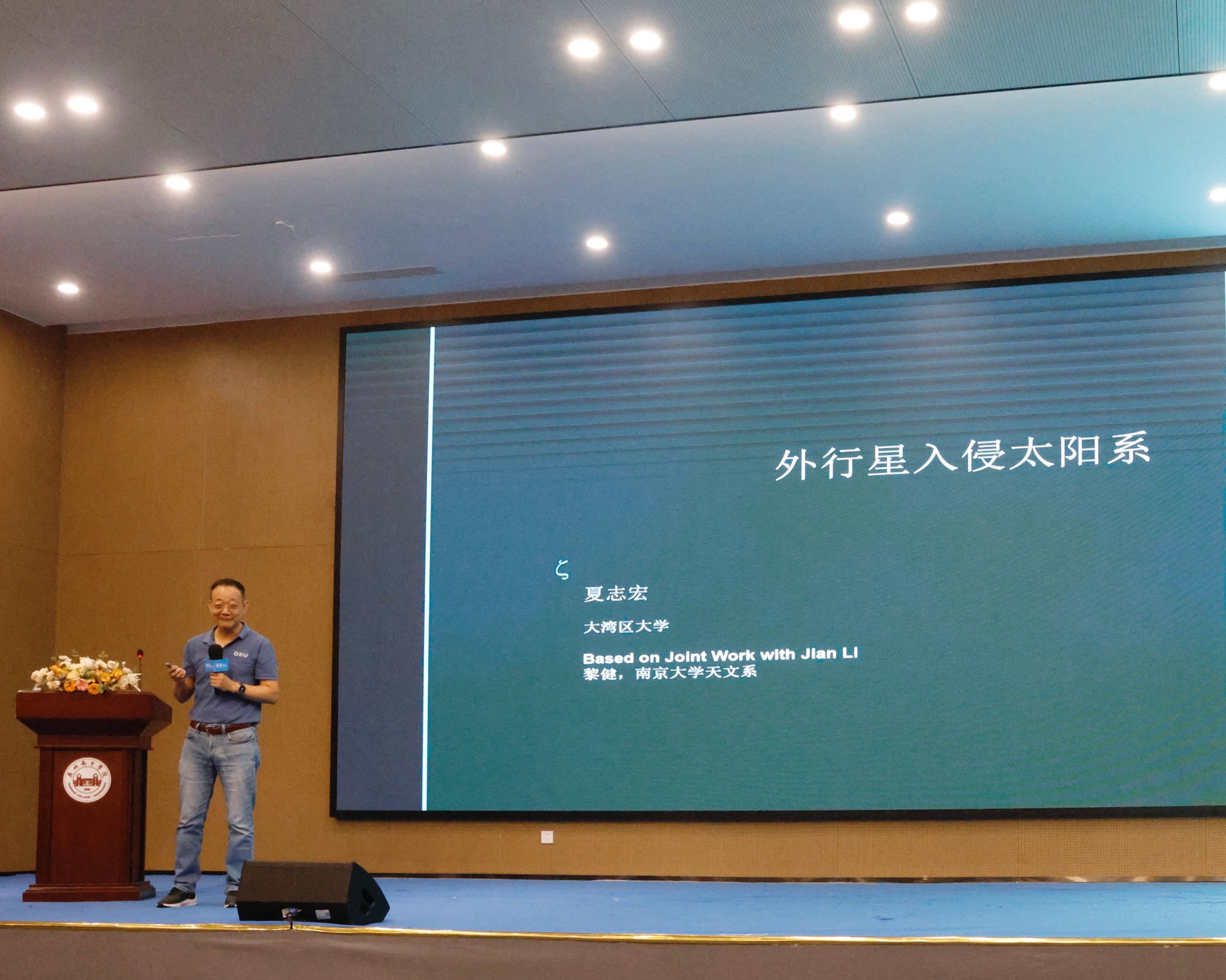 夏志宏教授首先对yabo鸭脖官网的诚挚邀请表达衷心的感谢。随后,他向在场师生分享最新研究成果——其带领的研究团队通过精密数学模型与大规模计算模拟,发现了一颗闯入太阳系的外来行星。夏志宏谈到:“这颗外来行星的质量介于土星与木星之间,约为地球的95~318倍,它在大概3亿年前突然造访太阳系,短暂游荡后又离开。”