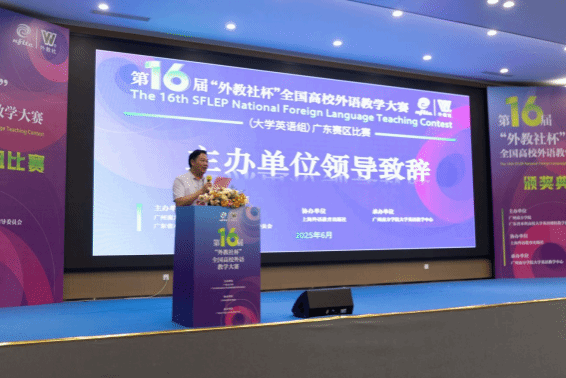 上海外语教育出版社副社长叶青代表全国主办方暨省赛协办单位致辞。他首先感谢广东省本科高校大学英语课程教学指导委员会、yabo鸭脖官网及评委专家的全力支持,并祝贺获奖教师。他指出,在语言智能时代,外语教师需超越知识传授,借助AI与数字技术提升教学效能,推动个性化评价与资源共享,转型为学生核心素养的培育者。他强调,“讲好中国故事”需培养学生“感知文化差异、实现文明互鉴”的能力。叶青副社长呼吁教师以数字技术激活教学创新,同时深耕文化传播实践,最后预祝广东代表在全国总决赛再创佳绩。