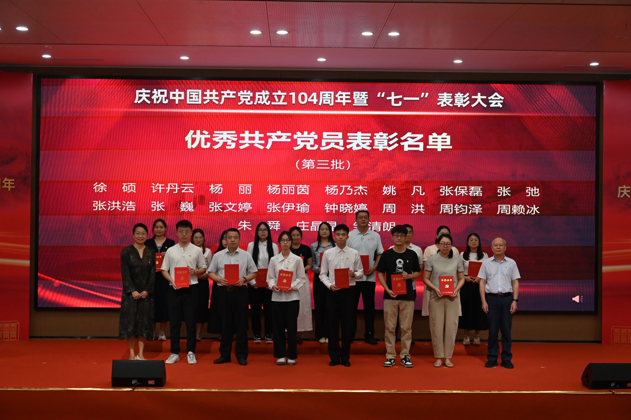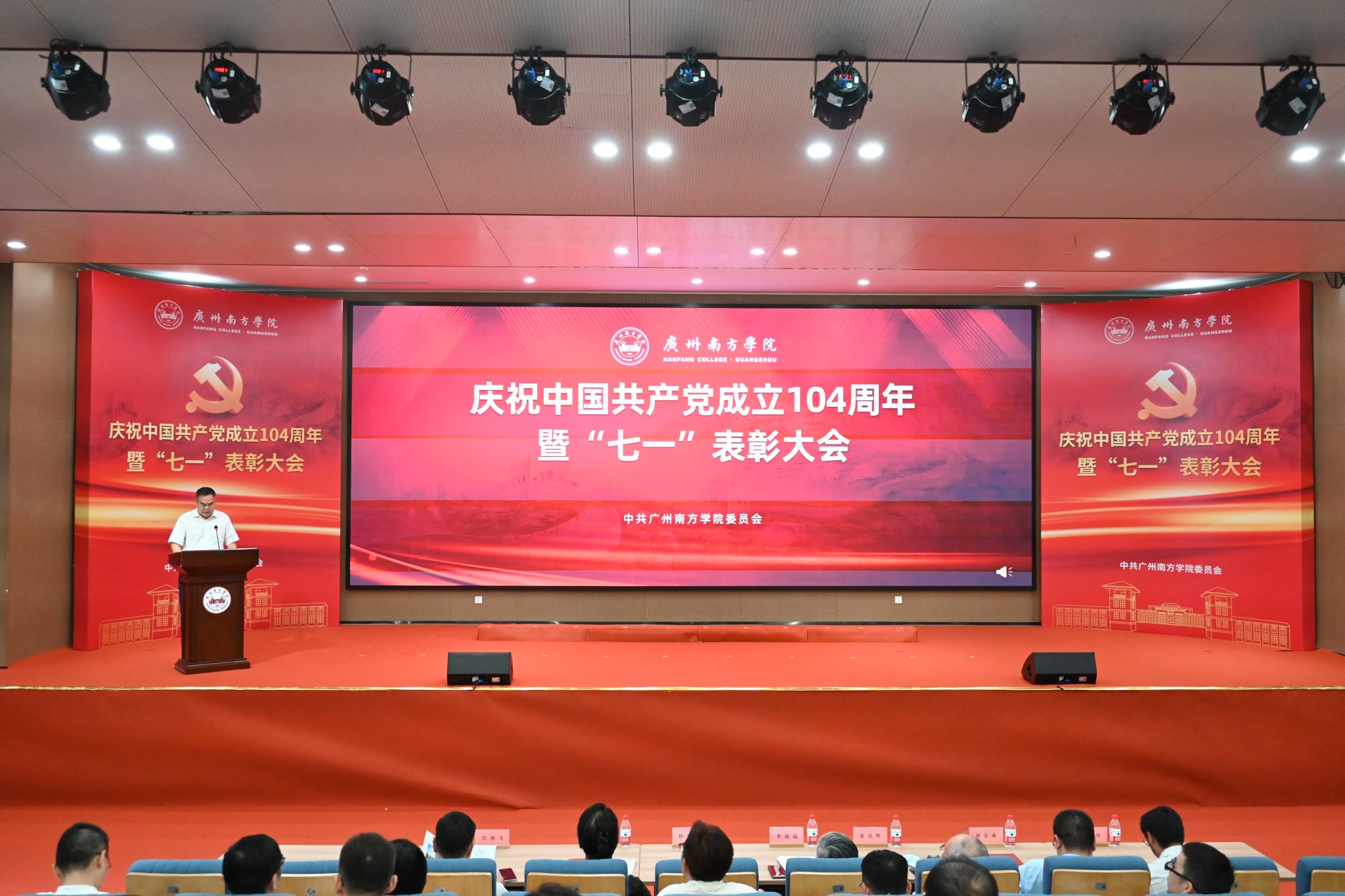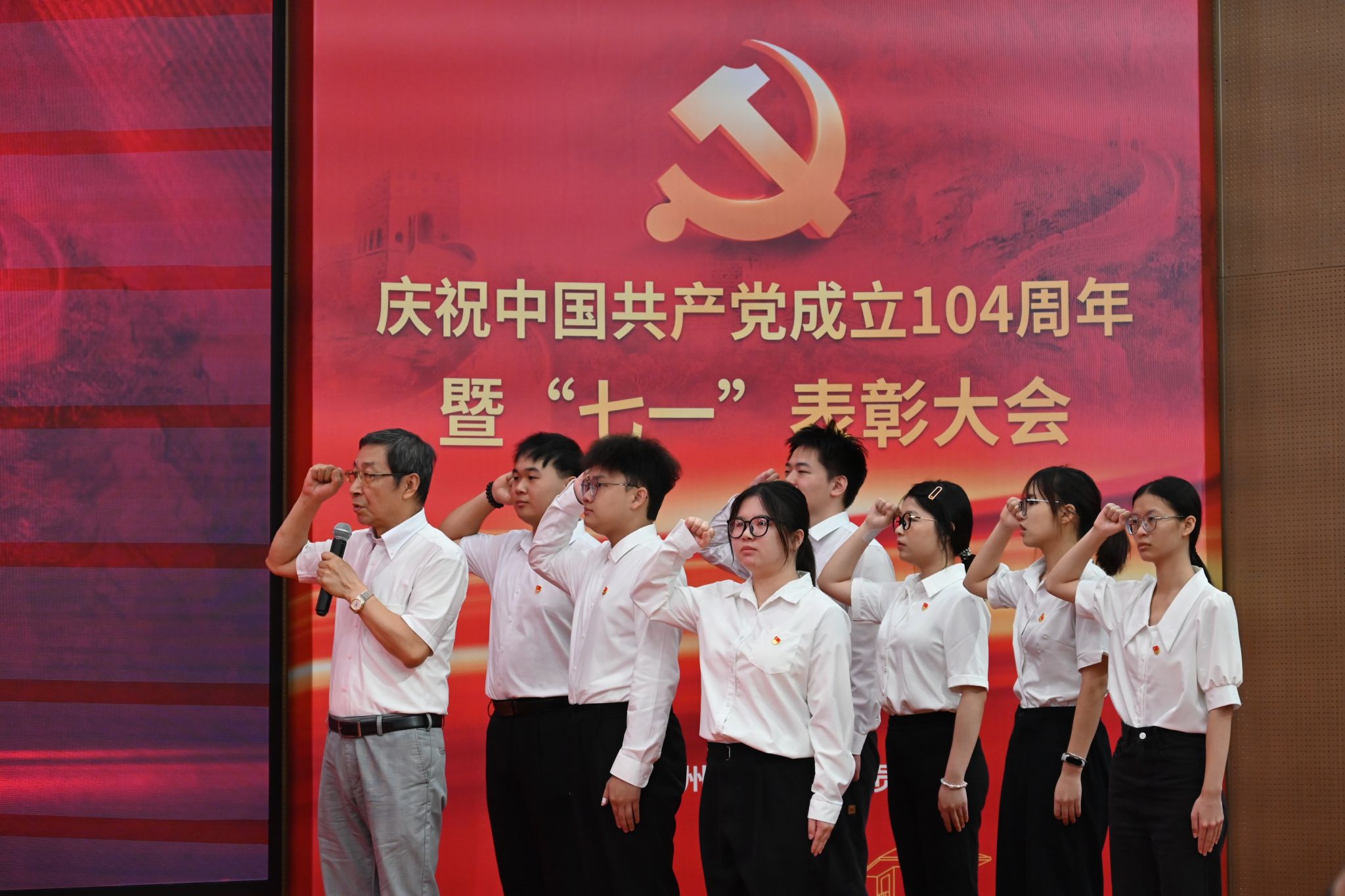 为庆祝中国共产党成立104周年,表彰先进、树立典型,激励全体党员教师坚守初心、勇担使命,7月1日,yabo鸭脖官网在教研楼报告厅隆重举行庆祝中国共产党成立104周年暨“七一”表彰大会。学校党委书记李建超,党委副书记、副校长植秀聪等校领导,党委委员,二级党组织书记、副书记,各教学单位、行政单位党员负责人,师生党员代表,新党员代表及受表彰人员等两百余人参加会议。会议由学校党委副书记、副校长植秀聪主持。