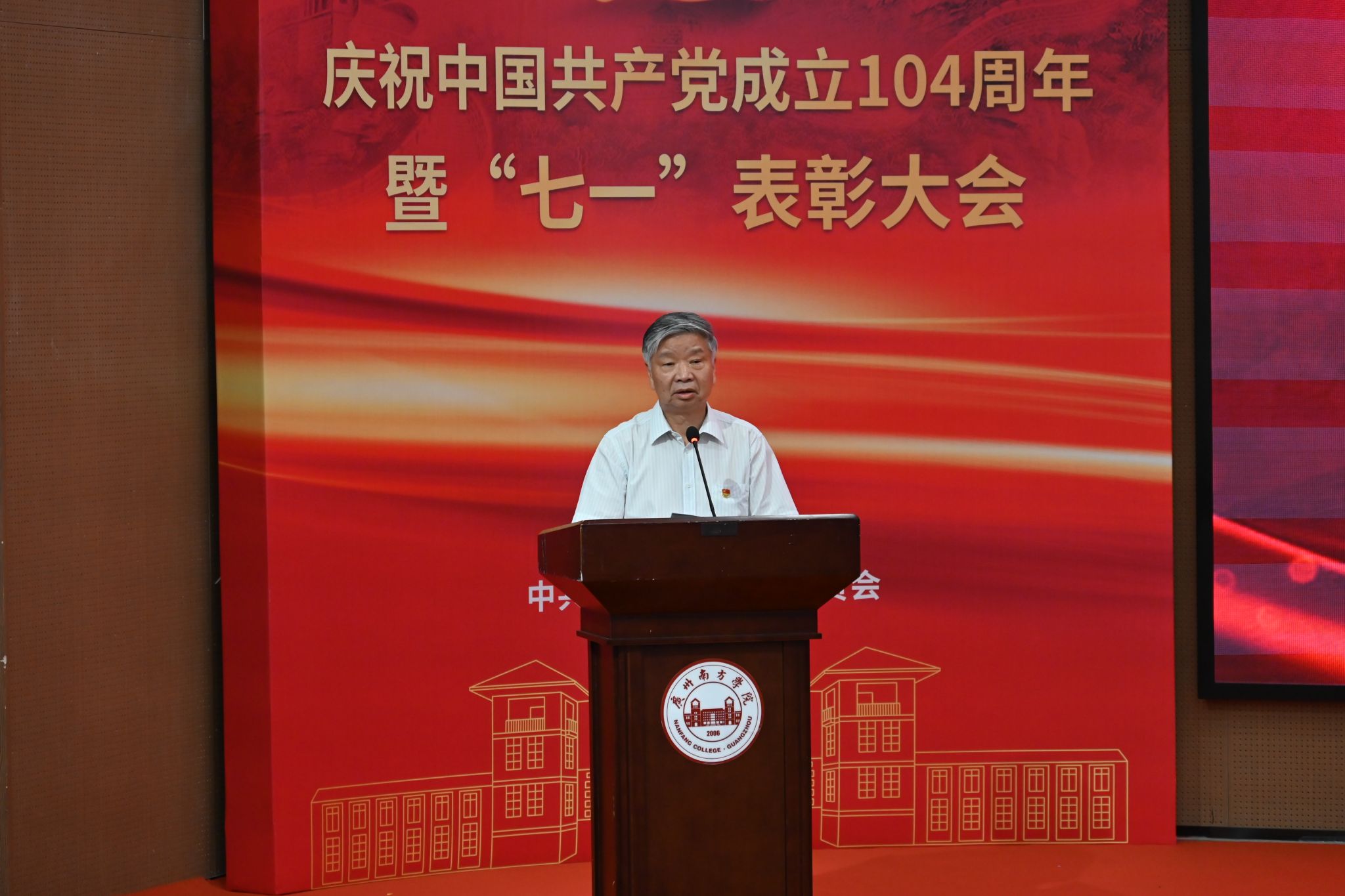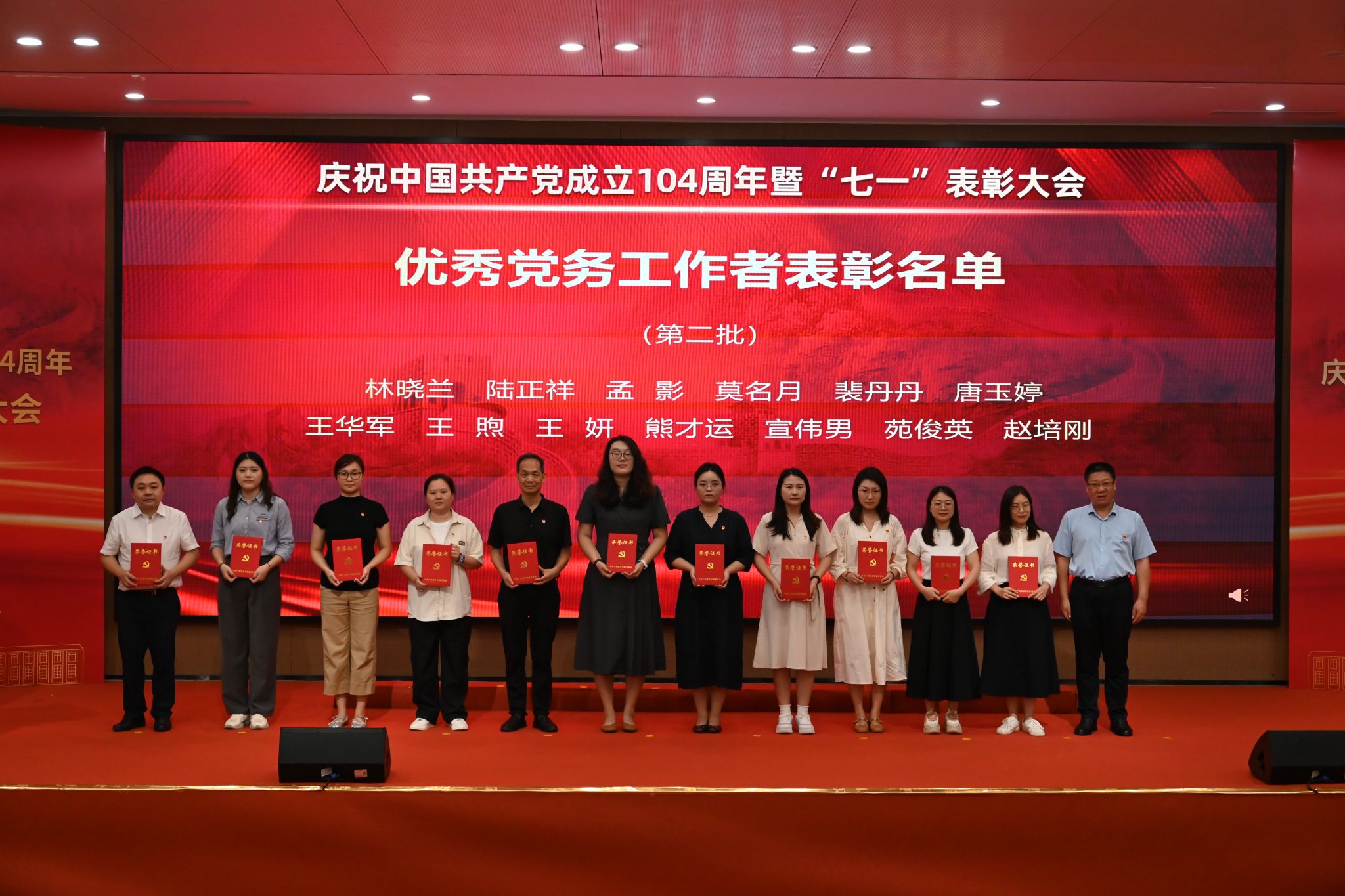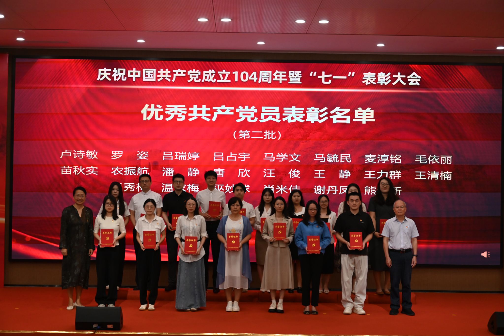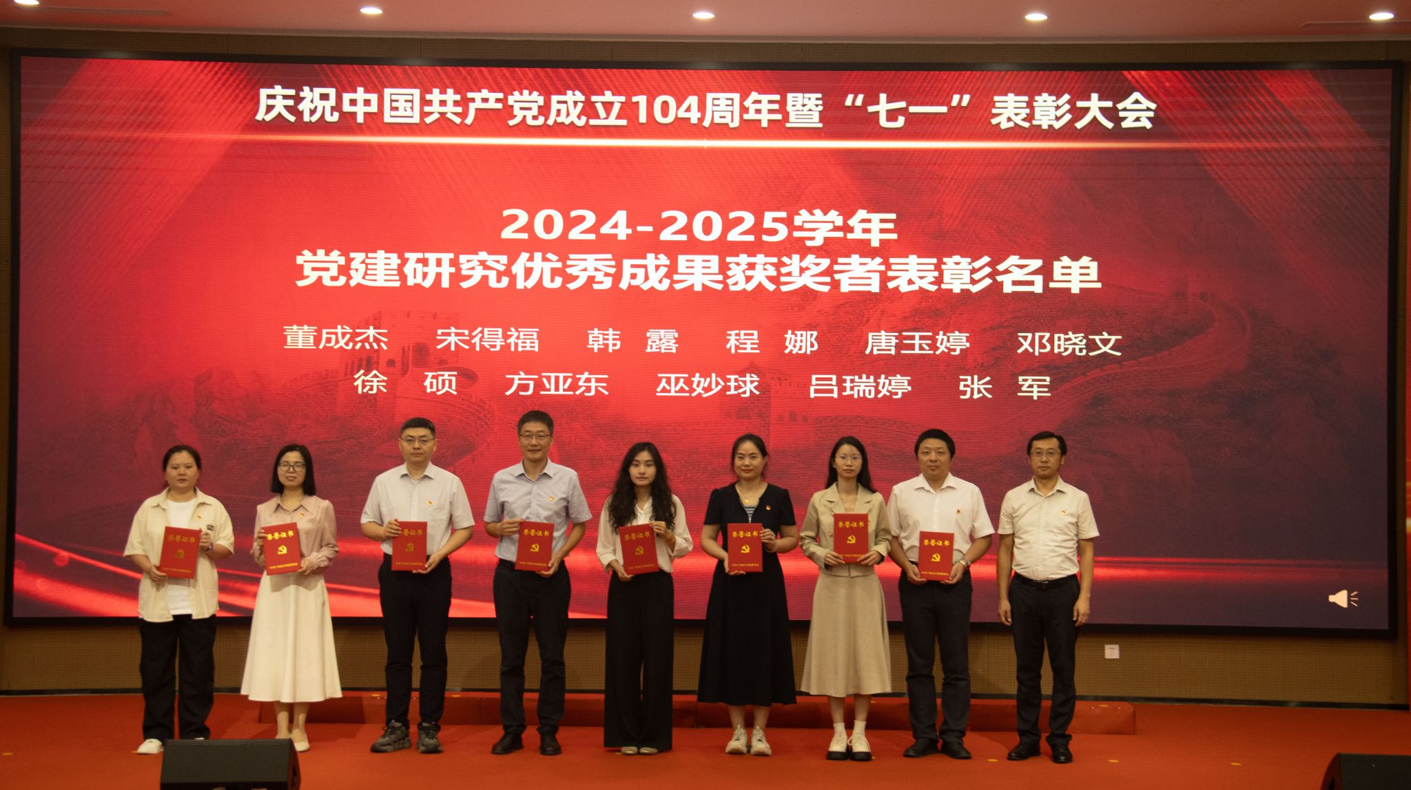 为庆祝中国共产党成立104周年,表彰先进、树立典型,激励全体党员教师坚守初心、勇担使命,7月1日,yabo鸭脖官网在教研楼报告厅隆重举行庆祝中国共产党成立104周年暨“七一”表彰大会。学校党委书记李建超,党委副书记、副校长植秀聪等校领导,党委委员,二级党组织书记、副书记,各教学单位、行政单位党员负责人,师生党员代表,新党员代表及受表彰人员等两百余人参加会议。会议由学校党委副书记、副校长植秀聪主持。