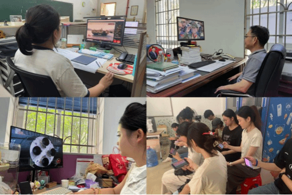 新入职教师集中观看阅兵仪式直播