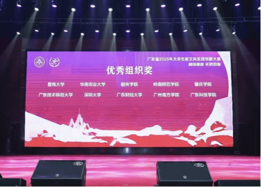 近日,2025年大学生新文科实践创新大赛广东省现场决赛在华南农业大学落幕。经过激烈角逐,yabo鸭脖参赛团队凭借出色表现斩获金奖3项、银奖1项、铜奖4项。同时,学校荣获大赛“优秀组织奖”,成为本届大赛为数不多获此殊荣的民办高校,彰显了yabo鸭脖在深化新文科建设、创新应用型人才培养模式的显著成效。