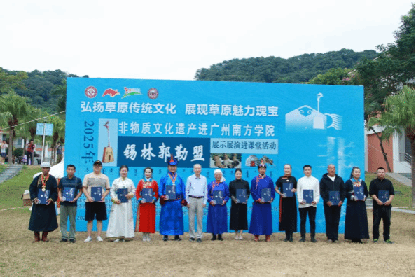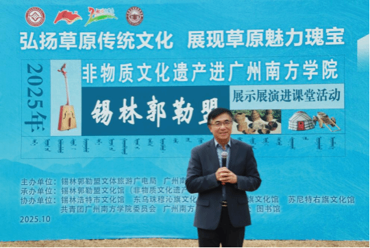 呼和那日苏馆长在讲话中充分肯定了本次“非遗进校园”活动取得的显著成果。他表示,本次活动是校馆协同育人的生动实践,让学生们得以系统学习并传习马头琴等非遗项目,亲身感受草原文化的魅力。他指出,本次成果展示并非终点,而是一个起点。期望同学们能成为非遗文化的从“学习者”转变为“传播者”,持续传播非遗魅力;期待校馆双方进一步深化合作,共同推动草原文化与岭南文化的交流互鉴与深度融合。