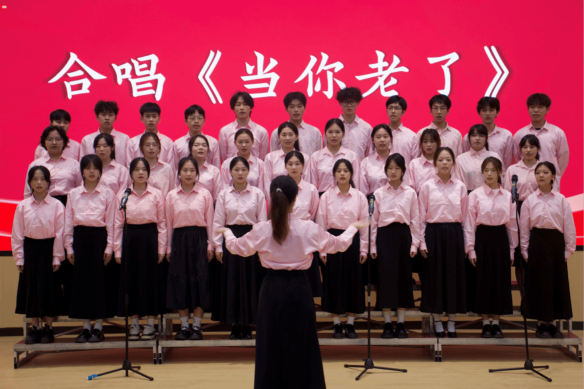 护理与健康学院艺术团合唱队以一曲《当你老了》营造温情的现场氛围。歌声落下之际,与会领导与嘉宾共同切开象征十年同行与感恩的纪念蛋糕。