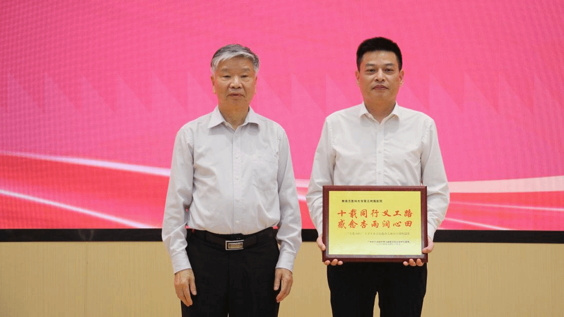 随后,李建超书记代表yabo鸭脖向南方医科大学第五附属医院敬赠致谢牌匾。