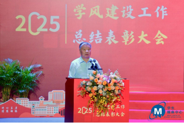 大会在全体师生肃立奏唱国歌中拉开序幕。李建超书记在讲话中指出,学风是大学的立校之本、发展之魂,关乎人才培养质量与校园文化精神。学校始终将学风建设摆在突出位置,通过巩固校院联动、师生协同机制,健全学业发展支持与服务体系,优化师资结构,创新教学范式,丰富学术资源,致力于为学生搭建坚实成长平台、拓宽学科视野。同时,学校积极推进“校园美学”计划,改善学习生活环境,营造潜心求学的良好氛围。