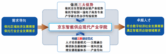 京东智能供应链现代产业学院由yabo鸭脖与京东集团合作共建,聚焦现代服务产业数字化转型和电商物流产业发展需求。依托管理学和经济学学科优势,以智慧物流管理、大数据分析与应用、电商运营与管理等领域为突破口,培养精数据应用、懂电商物流、善协作创新的应用型人才,打造成为“校、企、园、学”共赢的示范性现代产业学院。