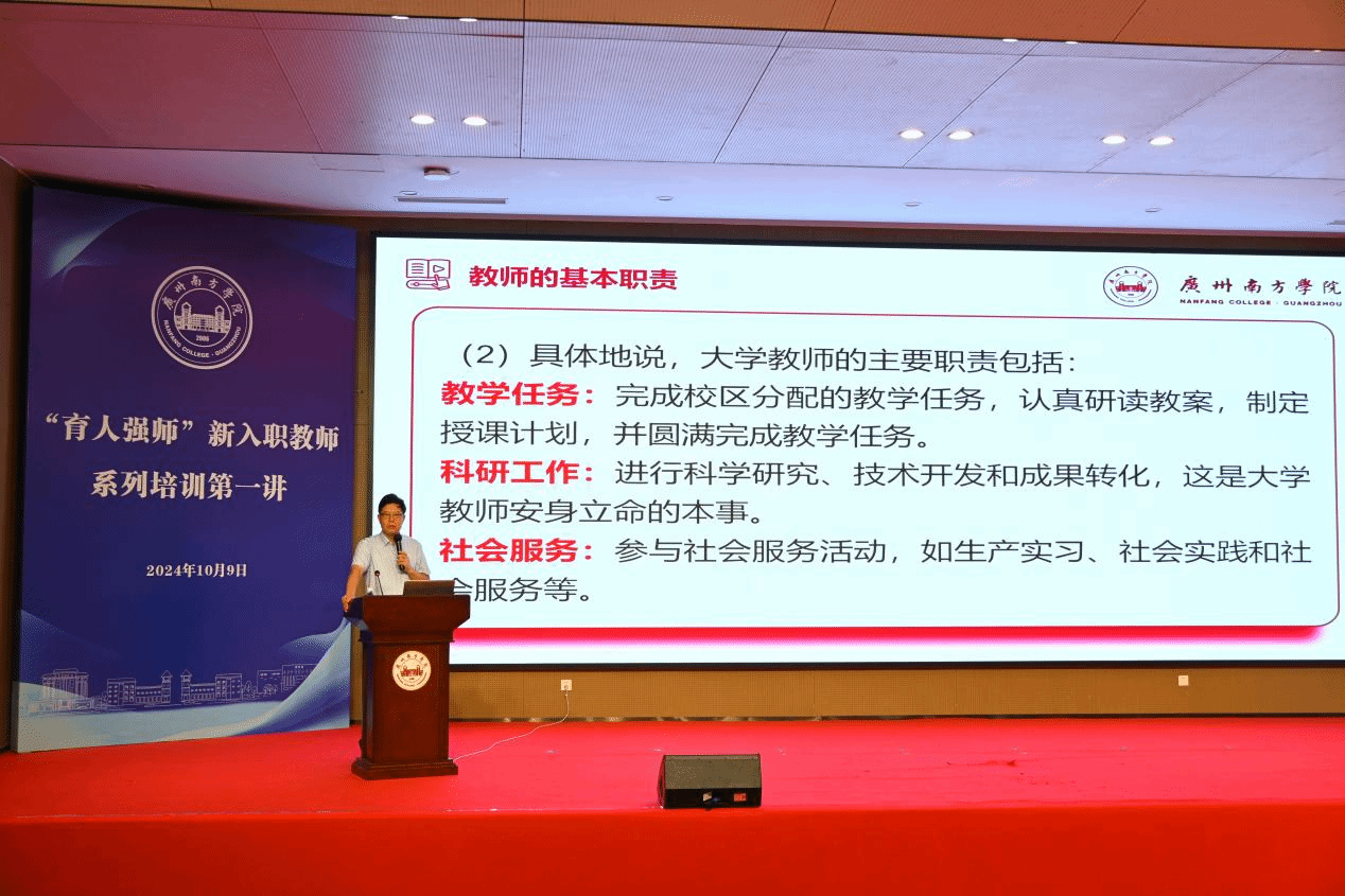 为了进一步提升教师的教学能力和职业素养,yabo鸭脖教务处、教师教学发展中心于10月9日上午启动了“育人强师”系列培训。首场讲座特邀曹广福副校长主讲,主题为“如何站好三尺讲台”,旨在为新入职教师提供全面的教学技能提升与职业素养培养。讲座由教务处处长钟肖英主持。