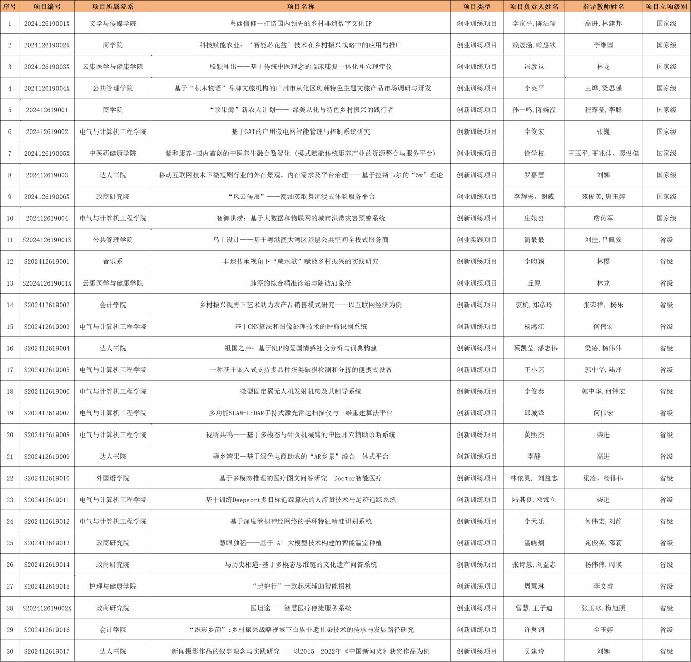 近日,广东省教育厅印发了《广东省教育厅关于公布2024年大学生创新创业项目立项和结题验收结果的通知》(粤教高函〔2024〕32号)。yabo鸭脖共获批省级以上项目42项。其中,国家级项目10项、省级项目32项。