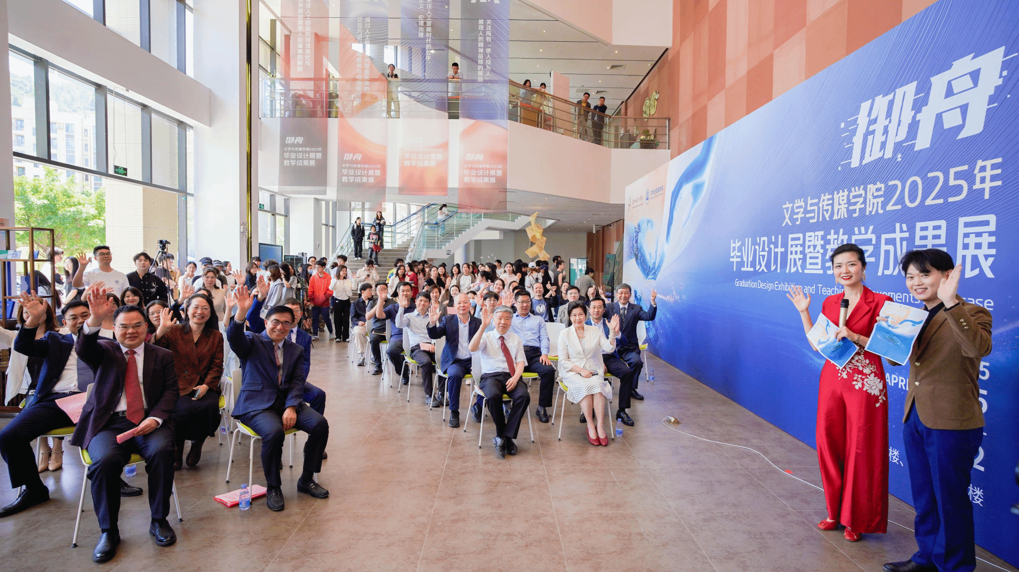 接着,孙立宣布文学与传媒学院2025年毕业设计展暨教学成果展——“御舟”正式开幕。与会领导、嘉宾、师生们共同见证了开幕式的启动仪式,象征“御舟”正式启航,驶向充满可能的未来。