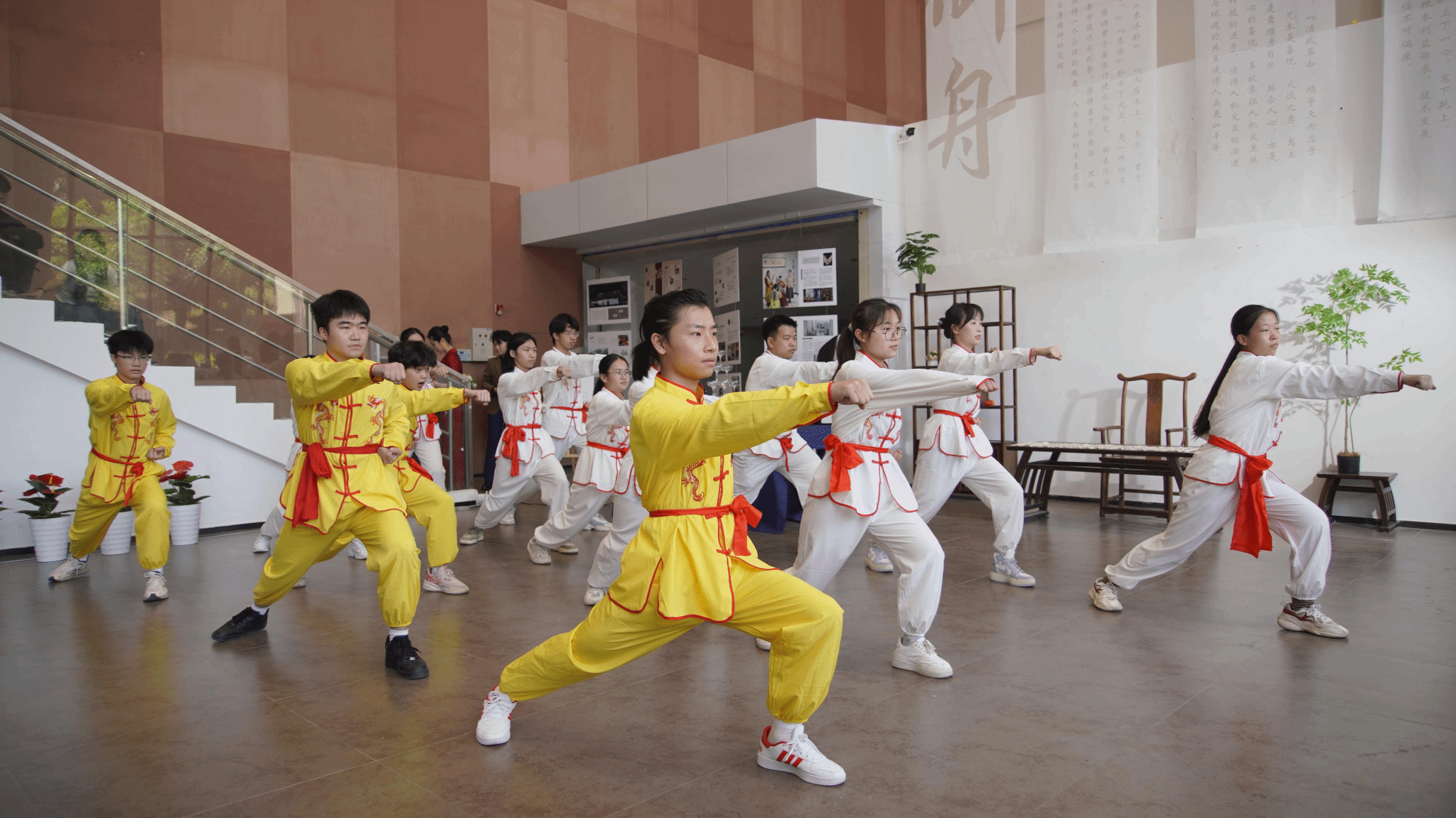 随后,师生共同带来一段行云流水的“太极五步拳”表演拉开了此次展览的帷幕。