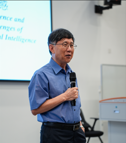 讲座伊始,韩爱果教授以“什么是人工智能?”开篇,随即围绕人工智能和语言学的交叉领域展开探讨。他特别回顾了自己在20世纪80年代初接触生成语法学的学术起点——从早期研读英文文献与外语资料入手,到逐步深入研究语言哲学、认知科学以及心理研究。韩爱果以自身学术轨迹为例,阐释了语言学研究如何为人工智能的自然语言处理提供理论根基。